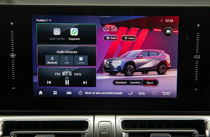 Asiento del conductor con regulación eléctrica, asientos delanteros con ventilación, apertura y arranque sin llave, climatizador automático con difusores traseros, pantalla táctil de 10,25”, entre otros ítems, destacan en este SUV.